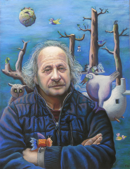Oggi, nel pieno della maturità, con raffinato senso pittorico, costruisce immagini di straordinaria bellezza: cieli infiniti e creature fantastiche che fanno luminose le scene dei suoi colloqui con la vita.
